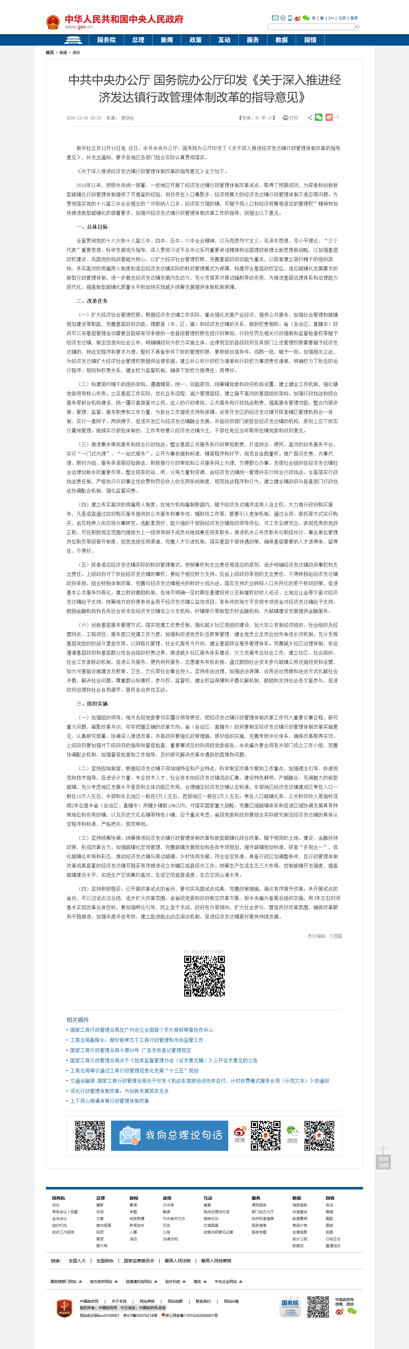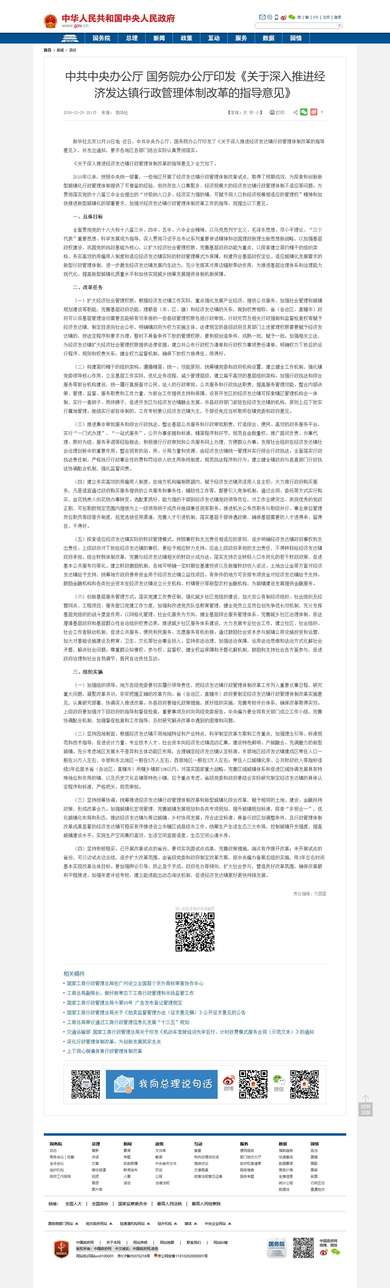 《关于深入推进经济发达镇行政管理体制改革的指导意见》